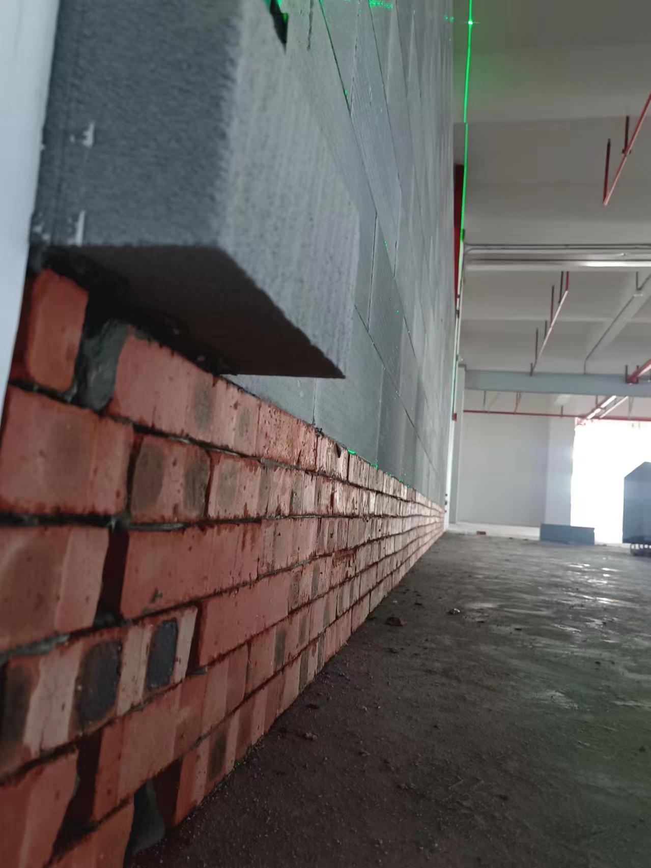 加气块隔墙的粘结剂涂抹与砌筑细节,直接影响墙体的牢固性和使用寿命,需用齿形抹刀在砖块的顶面、侧面(与相邻砖接触的面)涂抹专用粘结剂,粘结剂厚度控制在3~5mm,确保齿形纹路清晰,保证砂浆饱满度≥90%(需用百格网检查)。砌筑时将砖块按排版位置放置,用皮锤轻轻敲击调整,使砖块与粘结剂紧密结合,同时用水平仪、2m靠尺检查砖块的水平度和垂直度,每皮砖垂直度误差≤2mm,平整度误差≤3mm。上下两皮砖的搭接长度≥1/3砖长,如600mm长的砖,搭接长度≥200mm,避免出现垂直通缝,墙体顶部与梁底/顶棚之间需留20~30mm的缝隙,待墙体砌筑完成7天后(收缩稳定)再进行封堵,防止加气块干燥收缩导致墙体开裂。